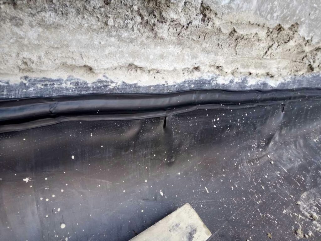 HDPE Geolock is placed in a recess during concrete pouring. It creates a watertight E or T-type lock set in the groove. Concrete is poured again to form and fix the lock on building surfaces. Finally, HDPE geomembrane is laid, welded through extrusion, and connected to the E-lock..